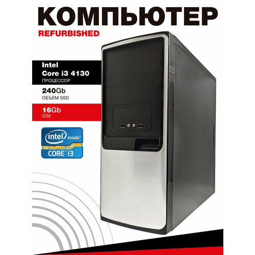 Бухгалтерский компьютер Intel Core i3-4130 | 16GB RAM | SSD 240GB — готов к работе с 1С, клиент-банками и базами данных!