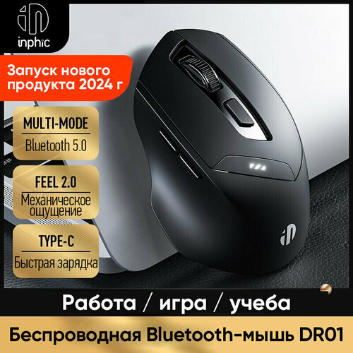 Беспроводная оптическая аккумуляторная компьютерная мышь inphic A1 / Бесшумная беспроводная мышь /6 кнопок / USB Bluetooth / Dpi 1000,1200,1600
