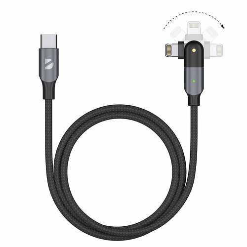 Дата-кабель USB-C - Lightning, поворотный, 180˚, PD, USB 2.0, 3A, 1.2м, алюминий, нейлон, черный, De, крафт, Deppa 72331-OZ