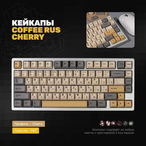Кейкапы с русскими символами Coffee Rus, профиль Cherry, PBT пластик, кириллица