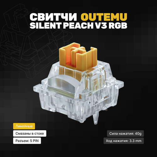 Механические переключатели (свитчи) Outemu Silent Peach V3 RGB (10 штук), линейные, 5-pin,40 грамм
