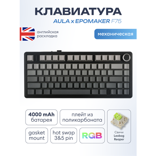 Беспроводная механическая клавиатура Epomaker x Aula F75, 75%, Bluetooth 5.0, 2.4Ghz, USB Type-C, Английская раскладка