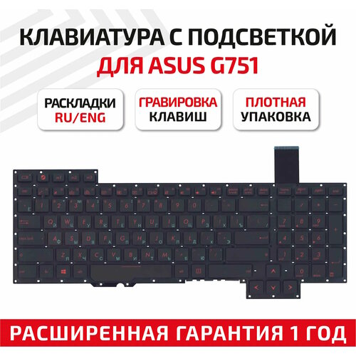 Клавиатура для ноутбука Asus G751, G751JL, G751JM, G751JT, G751JY, с подсветкой, без рамки