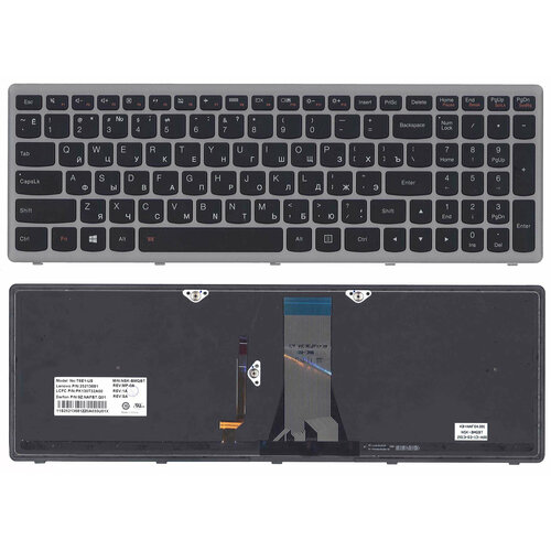 Клавиатура для ноутбука Lenovo IdeaPad Flex 14 G400s черная с серой рамкой