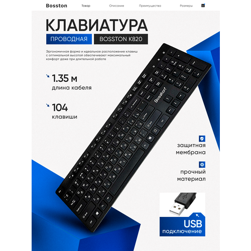 Клавиатура Bosston K820, механическая, с подсветкой, 104 клавиши, USB, черная