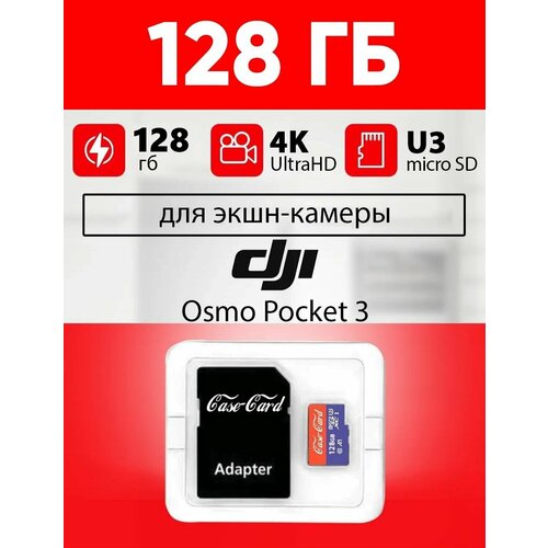 Карта памяти для экшн камеры SJCam / флешка Case Card для SJCam объем памяти 128 гб класс 10 U3 V30 MicroSDXC UHS-1 запись 4K Ultra HD