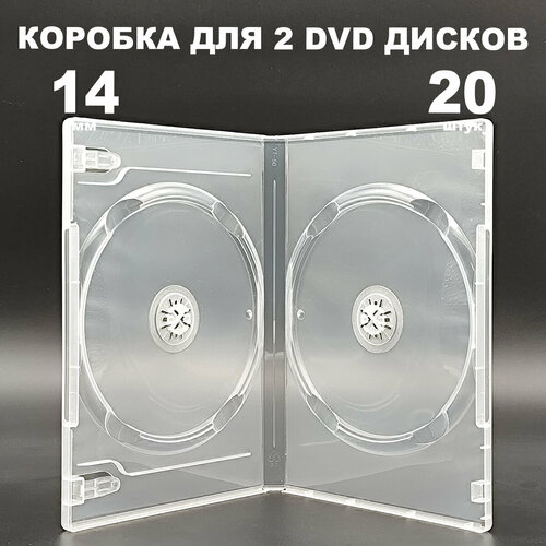 Коробка DVD на 2 диска / Бокс DVD на 2 диска прозрачный, 14мм, упаковка 20 штук