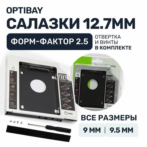 Салазки для ноутбука, Optibay, Оптибей 12.7 мм, переходник SATA, адаптер для HDD SSD, металлические, для привода