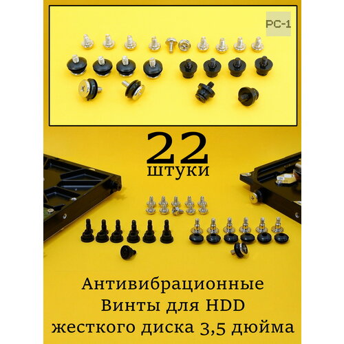 22шт комплект Антивибрационные винты для HDD жесткого диска 3,5 дюйма в корпус ПК, прорезиненный болт с демпферными шайбами, снижает шум и вибрацию