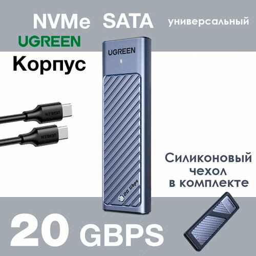 Универсальный переходник (внешний бокс) UGREEN M.2 NVMe PCI-E, M2 SATA NGFF - USB 3.2 Type-C Gen2 20Gbps Shockproof Box