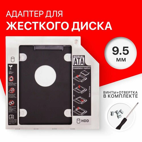 Optibay 9.5mm / Оптибей / HDD в разъём ODD / HDD caddy / адаптер салазки, переходник для ноутбука металлический