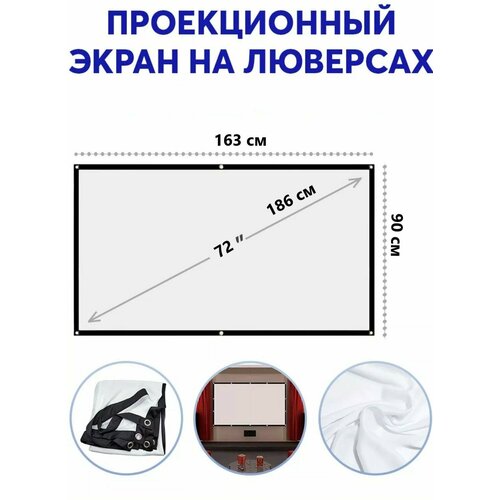 Экран для проектора 72 дюйма 16:9 (утолщенная версия), крепления для экрана (крючки, веревка)