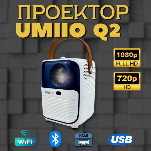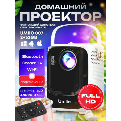 Проектор Umiio Q2 с HDMI / Портативный проектор / Мини проектор Umiio / Full HD Android TV / Белый / Family Store Home