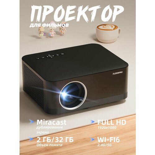 FLICKERPRO H80 Портативный проектор для фильмов 4К с подключением к телефону,600 ANSI, Full HD, Wi-Fi 6, Домашний кинотеатр, автофокус, коррекция искажений,11000люмен
