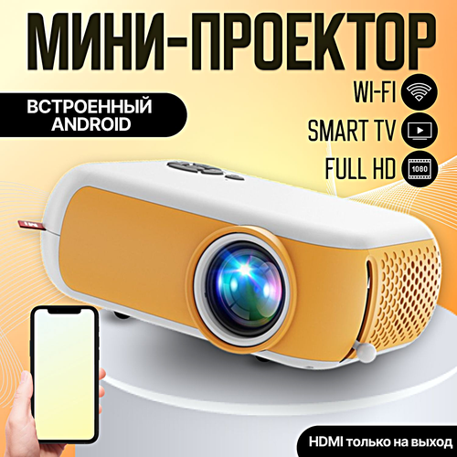 Проектор A10 Full HD Android TV, Портативный проектор 5G, HDMI, Проектор мультимедийный Wi-Fi 1080p для дома, дачи, офиса, Желтый
