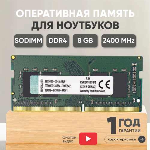 Модуль памяти Kingston SODIMM DDR4, 8ГБ, 2400МГц, 1.2В, PC4-19200, CL17 17-17-17-39