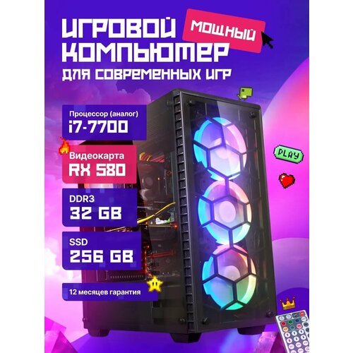 Игровой компьютер Intel Системный блок (Intel Core i7-7700, RAM 32 ГБ, SSD 256 ГБ, AMD Radeon RX 580 (8 Гб), Windows)