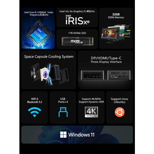 Мини ПК BMAX B9 POWER Intel® Core™ i9-12900HK 32G/1T SSD Windows 11