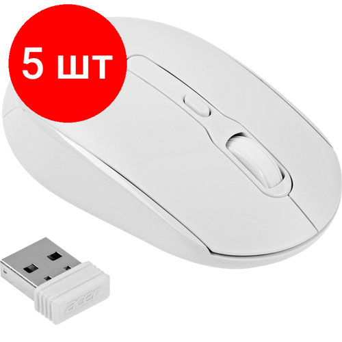 Комплект 5 штук, Мышь компьютерная Acer OMR308 оптичес. 1600dpi/4but беспроводная USB