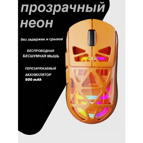 Мышь беспроводная бесшумная игровая, с аккумулятором, неоновой подсветкой М7 цвет оранжевый.