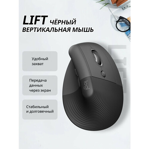 Беспроводная мышь Logitech Lift с аккумулятором и разрешением 4000 DPI Черная мышка