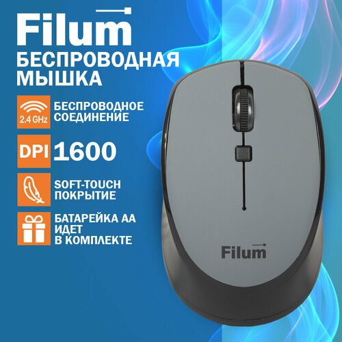 Мышь беспроводная Filum FL-MW10-GY оптическая 2.4 ГГц USB 4 кнопки