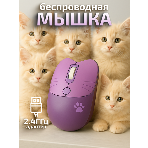 Компьютерная мышь беспроводная Котик с лапкой M3 2,4G USB фиолетовая