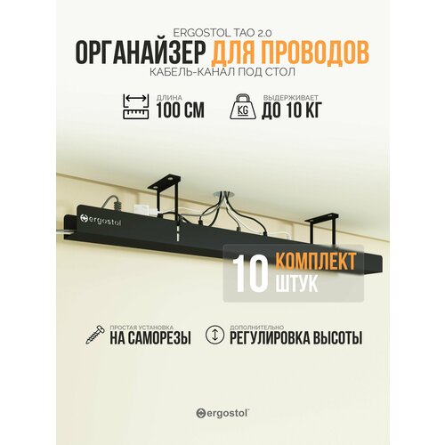 Кабель-канал для стола Тао 2.0, 1 м (комплект 10 штук), органайзер для проводов и сетевого фильтра металлический