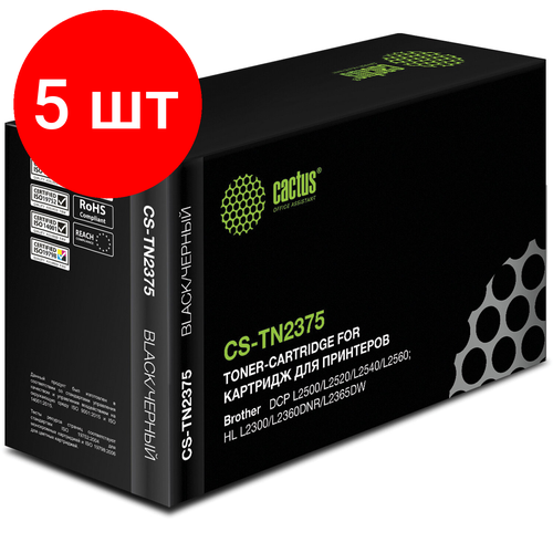 Комплект 5 шт, Картридж лазерный CACTUS (CS-TN2375) для BROTHER HL-L2300DR/2340DWR/DCP-L2500, ресурс 2600 стр.