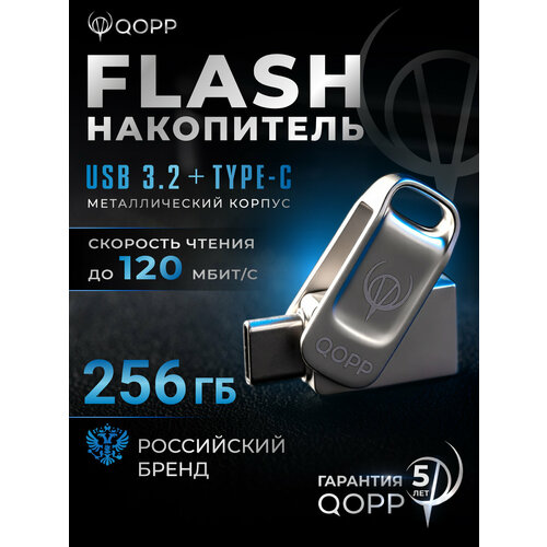 Флешка QOPP, 256ГБ, USB 3.2, TYPE-C, металлический корпус, серебристая