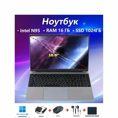 Ноутбук Premium 15,6" IPS, Intel N95 4*3,4GHz, RAM 32Gb, PD Type-c, 1080p camera, 5000mAh, 256Gb SSD nvme