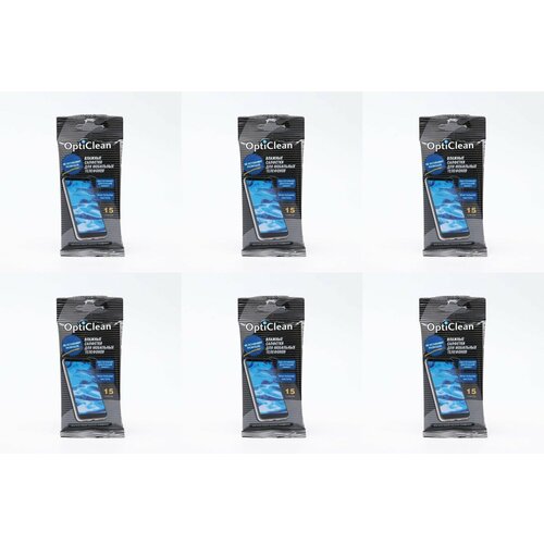 OptiClean Влажные салфетки для мобильных телефонов, 15 шт, 6 уп