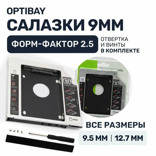 Салазки для ноутбука, Optibay, Оптибей 9 мм, переходник SATA, адаптер для HDD SSD, металлические, для привода