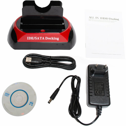 Док-станция для HDD GSMIN 2xSATA (USB 2.0, USB 3.0) (Черно-красный)