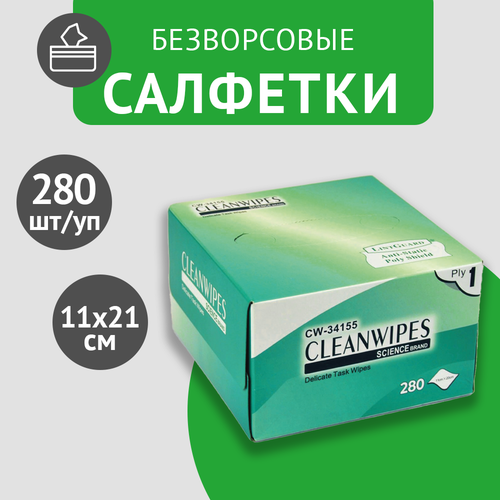 Салфетки безворсовые профессиональные CLEANWIPES для протирки линз, объективов, оптического кабеля, коннекторов, очков, смартфонов, часов и маникюра (280 шт) размер 11х21 см.