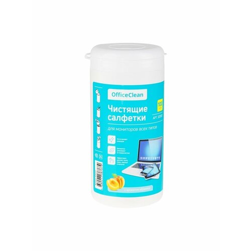 Салфетки чистящие влажные OfficeClean для мониторов всех типов, с ароматом абрикоса, 100 шт (325157)