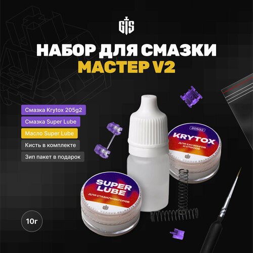 Набор "Мастер V2" (10 грамм) для смазки переключателей (свитчей), стабилизаторов (Krytox 205g2, Super Lube, Super Lube Oil), зиплок и кисточка в комплекте