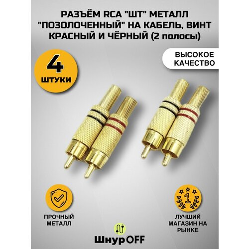 Разъем RCA штекер металл позолоченный на кабель, под винт, красный и черный( 4 штуки)