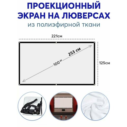 Экран для проектора 150 дюймов 16:9 (утолщенная версия), крепления для экрана (крючки, веревка)