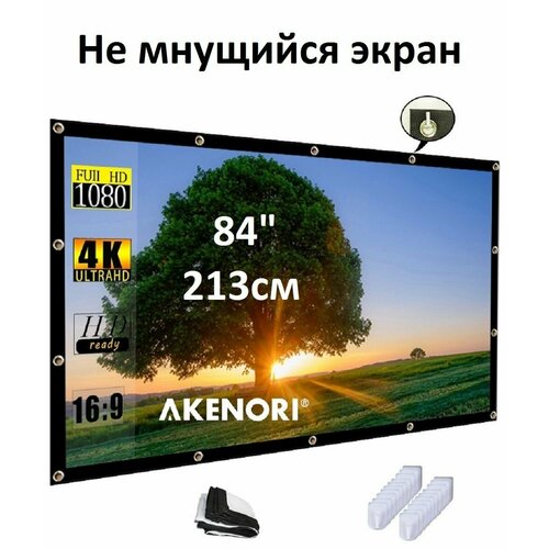 Экран для проектора 84 дюйма 213см не мнущийся, с кольцами и крюками для темных стен (формат 4:3 и 16:9)