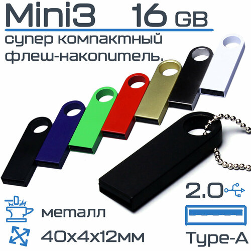 Компактная металлическая флешка с круглым отверстием (16 Гб / GB USB 2.0 Черный mini3 Flash drive ME050)
