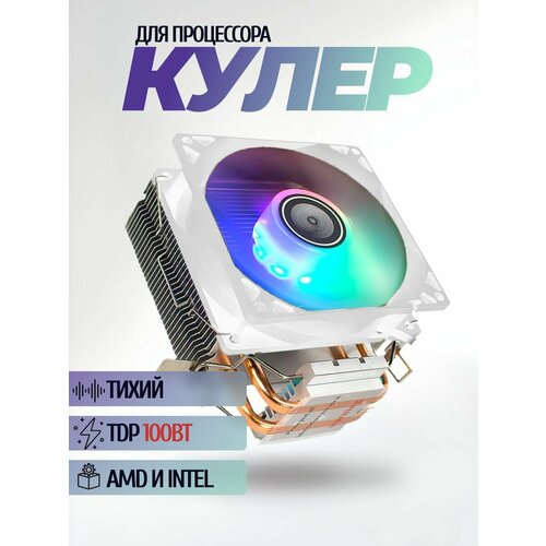 Кулер для процессора белый башня 2 тепловые трубки и вентилятор 92мм с подсветкой fRGB