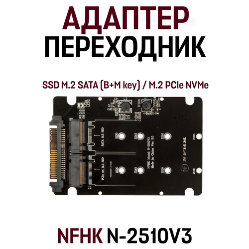 Адаптер-переходник накопителей SSD M.2 SATA (B+M key) / M.2 PCIe NVMe (M key) разъем 2.5" U.2 SFF-8639 / NFHK N-2510V3