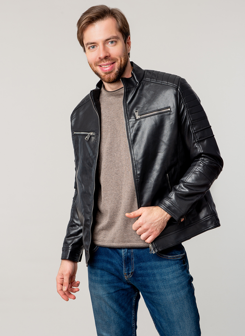 Кожаная куртка мужская Каляев 63858 черная 48 RU