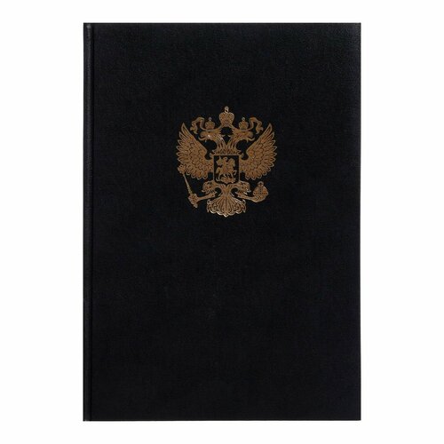 Книга учета, 96 листов, обложка бумвинил, блок офсет, клетка, цвет черный, герб (тиснение золотой фольгой)