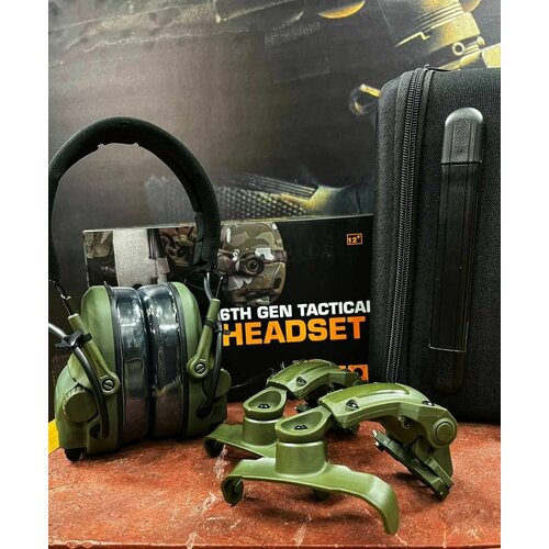 Наушники активные тактические 6TH Gen Tactical headset стрелковые/гарнитура/поворотные крепления на шлем олива