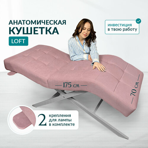 Анатомическая кушетка в стиле Лофт, в салон красоты, серебристая ножка, в студию, для наращивания ресниц, для преманентного макияжа, Велюр Цвет Пудровый
