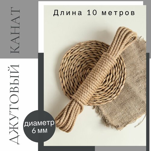 Канат джутовый веревка д.6мм 10 м