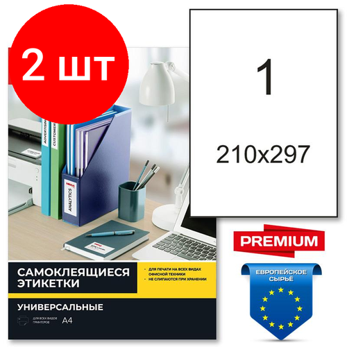 Комплект 2 упаковок, Этикетки самоклеящиеся Promega Label Premium 210х297мм,70г белая (100л/уп)