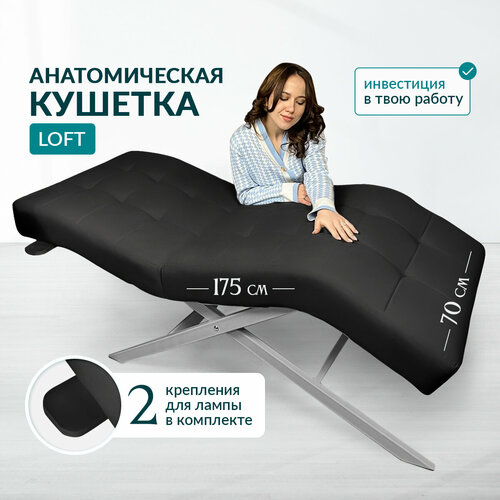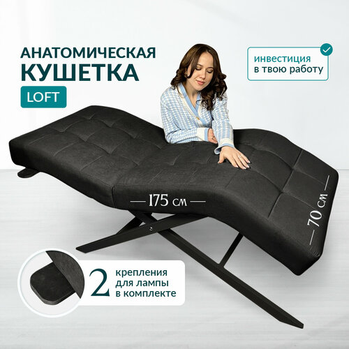 Анатомическая кушетка в стиле Лофт, в салон красоты, черная ножка, в студию, для наращивания ресниц, для преманентного макияжа, Велюр Цвет Черный